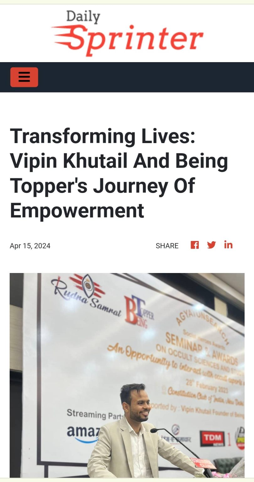 Vipin Khuttel, India’s leading digital marketing expert and trainer, The founder of Being Topper, has been spearheading a transformative journey of empowerment through education and entrepreneurship. With a focus on bridging the digital divide and fostering inclusive skill development, Vipin Khuttel and Being Topper have been instrumental in shaping the future of digital marketing education in India.