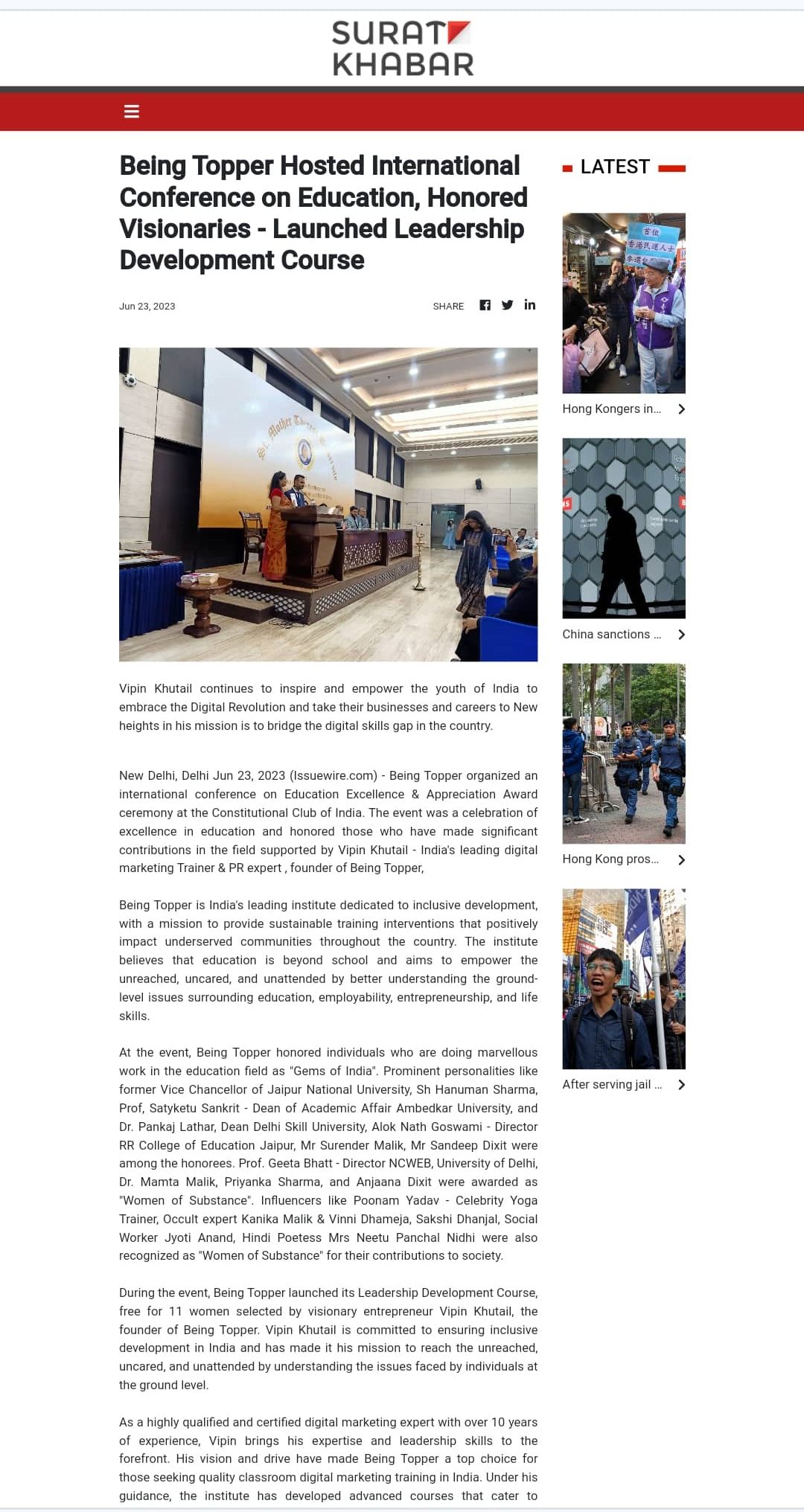 Vipin Khuttel, India’s leading digital marketing expert and trainer, The founder of Being Topper, has been spearheading a transformative journey of empowerment through education and entrepreneurship. With a focus on bridging the digital divide and fostering inclusive skill development, Vipin Khuttel and Being Topper have been instrumental in shaping the future of digital marketing education in India.