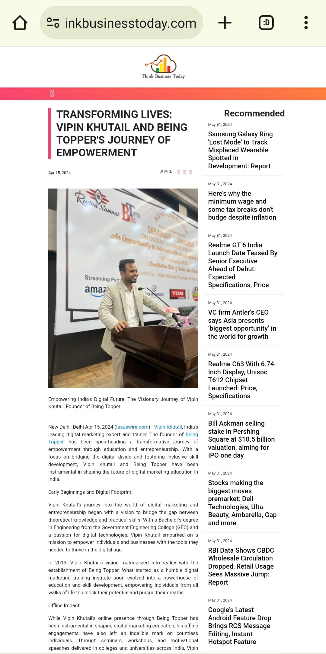 Vipin Khuttel, India’s leading digital marketing expert and trainer, The founder of Being Topper, has been spearheading a transformative journey of empowerment through education and entrepreneurship. With a focus on bridging the digital divide and fostering inclusive skill development, Vipin Khuttel and Being Topper have been instrumental in shaping the future of digital marketing education in India.